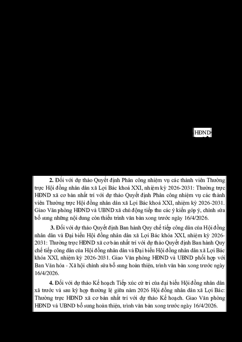 | Tiêu đề văn bản | THÔNG BÁO Kết luận phiên họp Thường trực Hội đồng nhân dân xã tháng 4 năm 2026 | ||