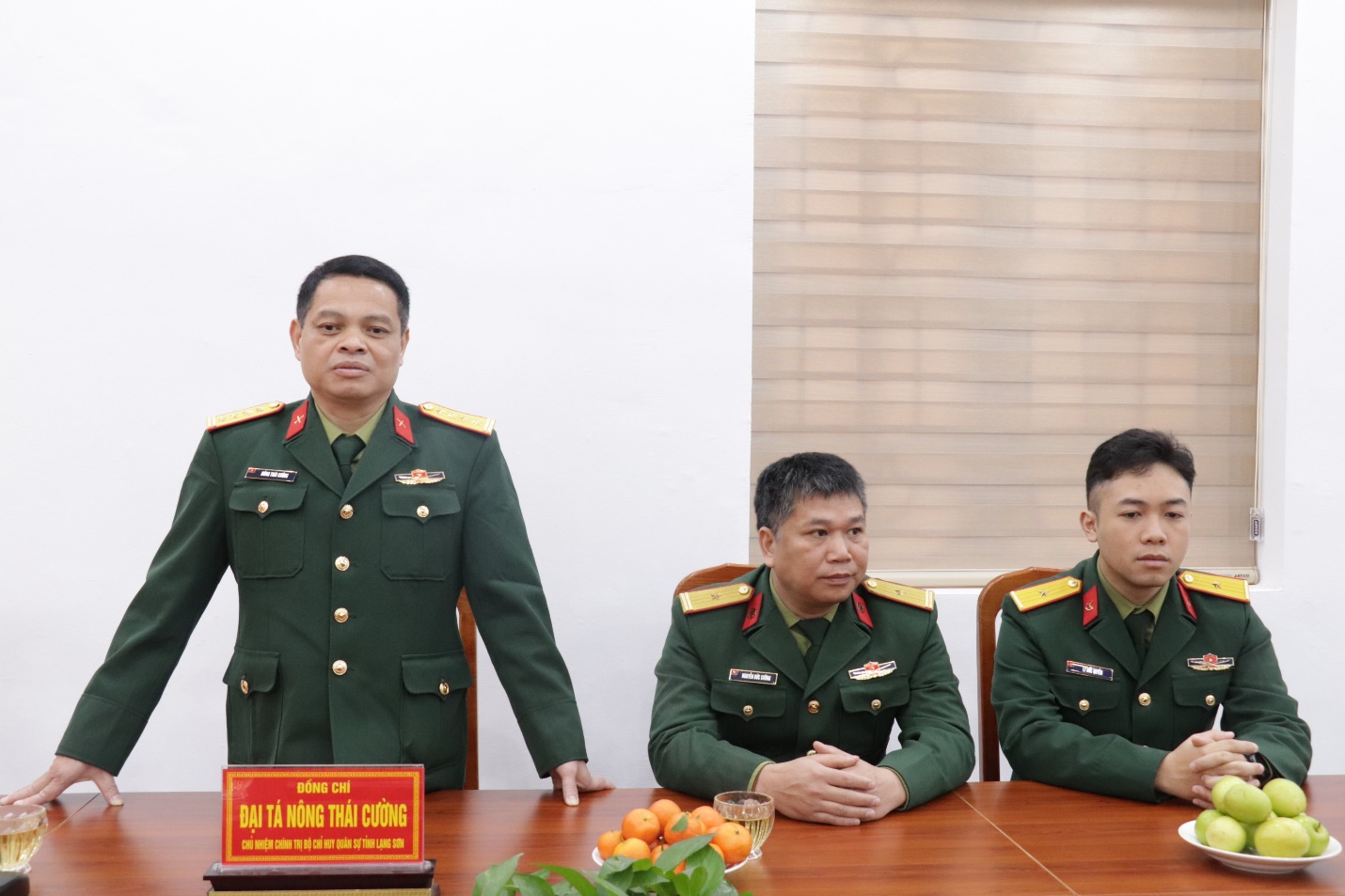 Đồng chí Đại tá Nông Thái Cường, Chủ nhiệm Chính trị Bộ CHQS tỉnh Lạng Sơn phát biểu tại chương trình