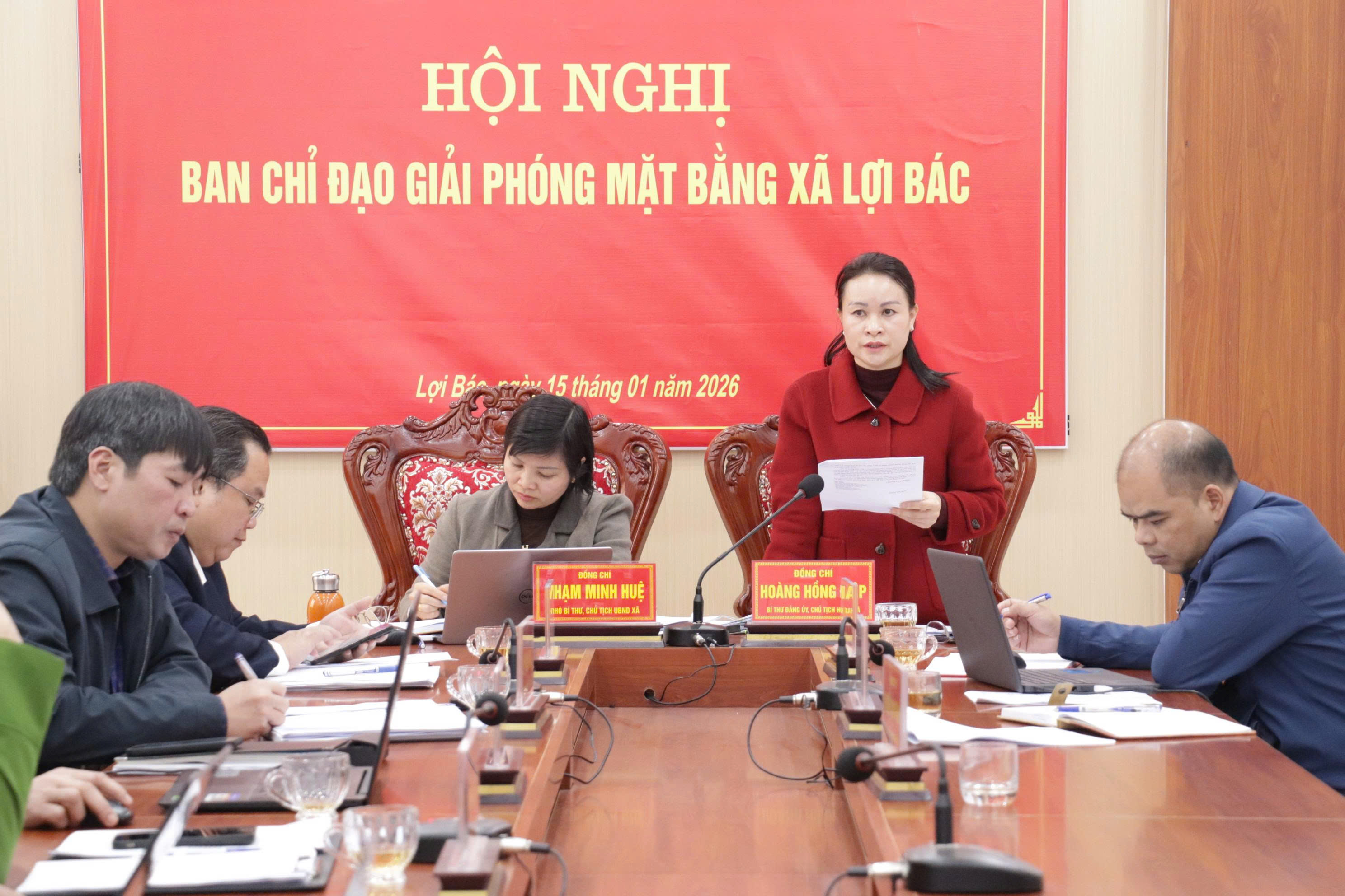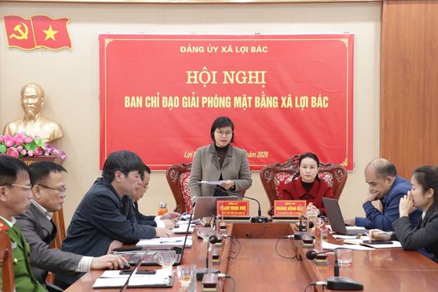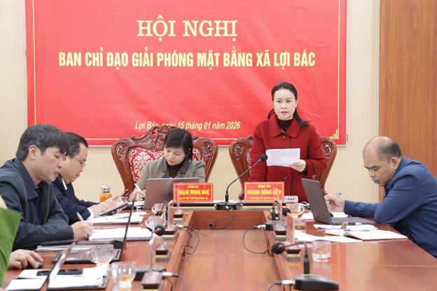 Sáng 15/01/2026, đồng chí Hoàng Hồng Điệp, Bí thư Đảng ủy, Chủ tịch HĐND xã, Trưởng Ban Chỉ đạo giải phóng mặt bằng (GPMB) xã; đồng chí Phạm Minh Huệ, Phó Bí thư Đảng uỷ, Chủ tịch UBND xã, Phó Trưởng Ban Thường trực Ban Chỉ đạo GPMB xã đồng chủ trì Hội nghị Ban Chỉ đạo GPMB xã Lợi Bác. Tham dự có đại diện lãnh đạo Đảng uỷ, HĐND, UBND xã và các phòng, ban, ngành liên quan.