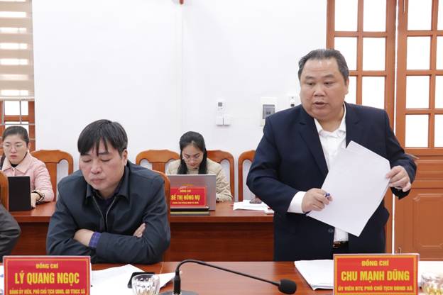Đại diện lãnh đạo UBND xã phát biểu ý kiến tại hội nghị