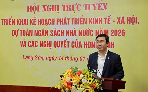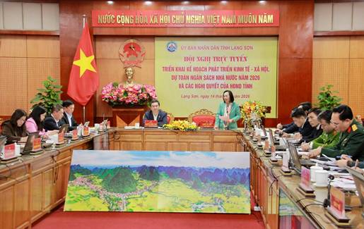 Chiều ngày 14/01/2026, UBND tỉnh Lạng Sơn tổ chức Hội nghị trực tuyến triển khai Kế hoạch phát triển kinh tế - xã hội, dự toán ngân sách nhà nước (NSNN) năm 2026 và các nghị quyết của HĐND tỉnh. Đồng chí Đoàn Thị Hậu, Phó Bí thư Thường trực Tỉnh ủy, Chủ tịch HĐND tỉnh dự và chỉ đạo hội nghị. Đồng chí Nguyễn Cảnh Toàn, Phó Bí thư Tỉnh ủy, Chủ tịch UBND tỉnh chủ trì hội nghị. Hội nghị được tổ chức theo hình thức trực tiếp kết hợp trực tuyến từ điểm cầu UBND tỉnh đến các xã, phường của tỉnh.