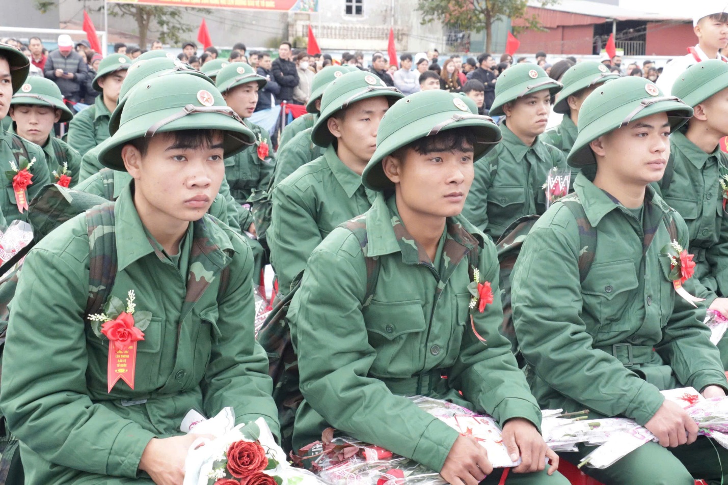Không khí ngày hội tòng quân tại đây diễn ra trang trọng, đầy khí thế.