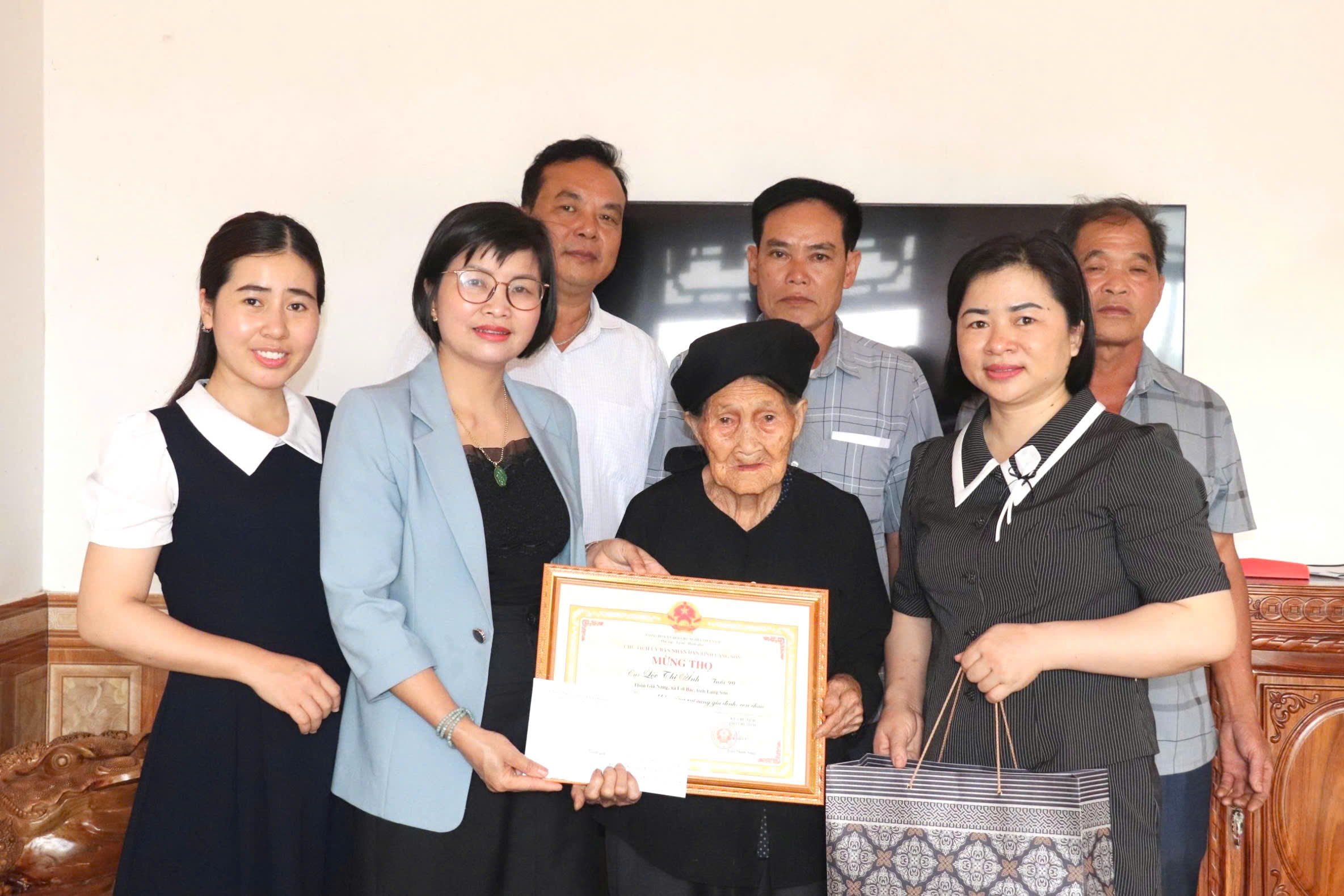 Đoàn 1 do đồng chí Phạm Minh Huệ, Phó Bí thư Đảng ủy, Chủ tịch UBND xã làm trưởng đoàn đã đến thăm, chúc thọ người cao tuổi thọ 90 tuổi tại gia đình bà Lộc Thị Ảnh, thôn Già Nàng, xã Lợi Bác.