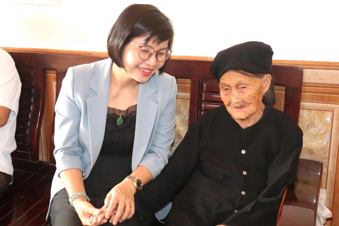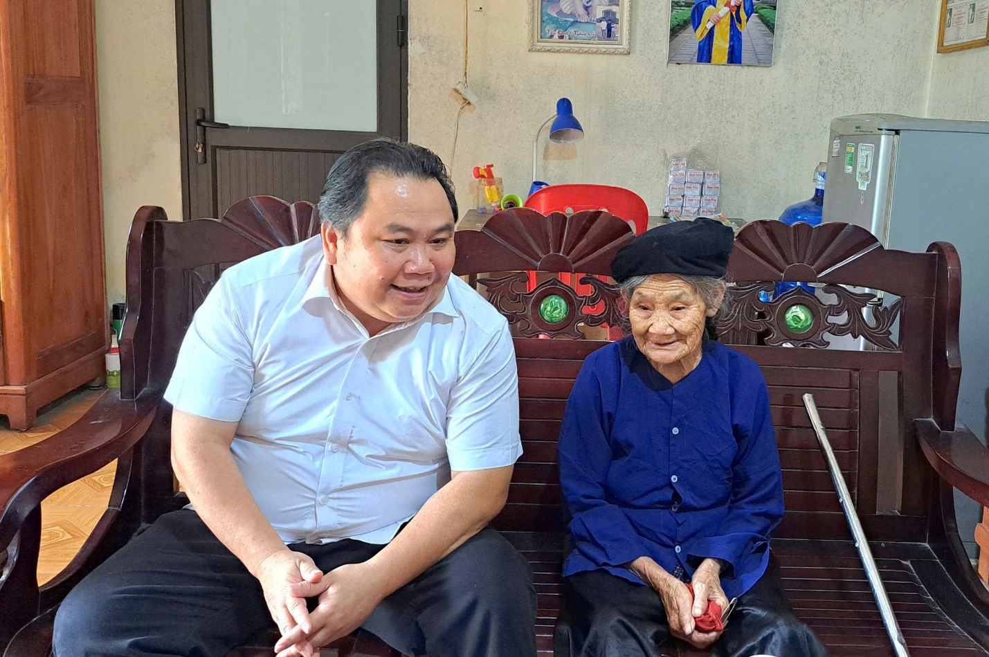 Đồng chí Phạm Minh Huệ, Phó Bí thư Đảng ủy, Chủ tịch UBND xã thăm, chúc thọ bà Lộc Thị Ảnh, thôn Già Nàng, xã Lợi Bác
