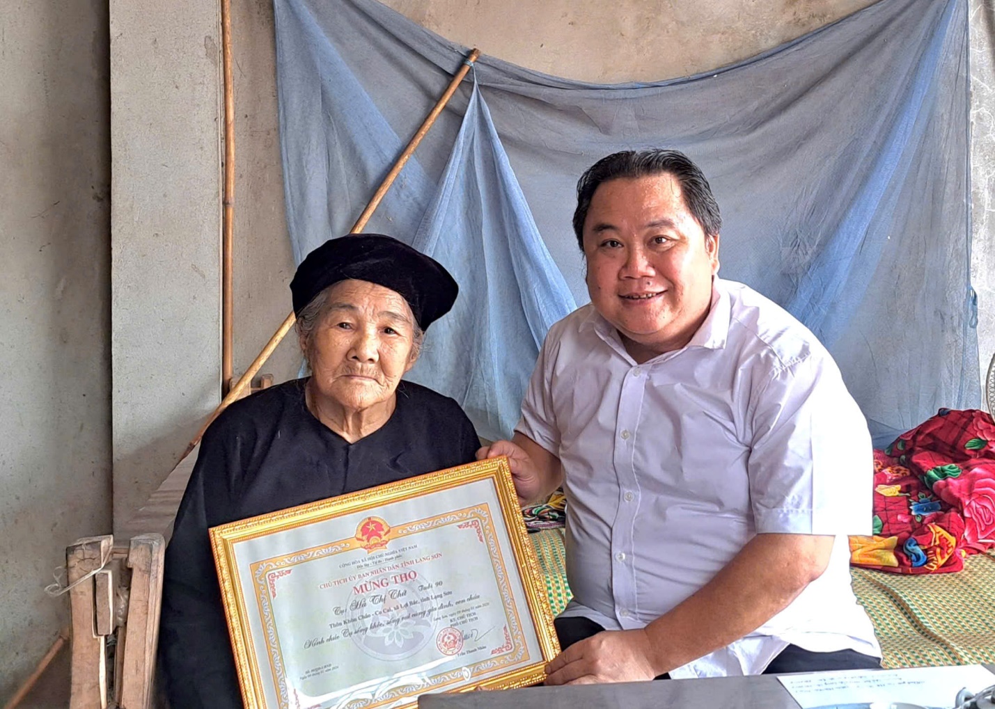 Thăm, chúc thọ, mừng thọ người cao tuổi thọ 90 tuổi trên địa bàn xã