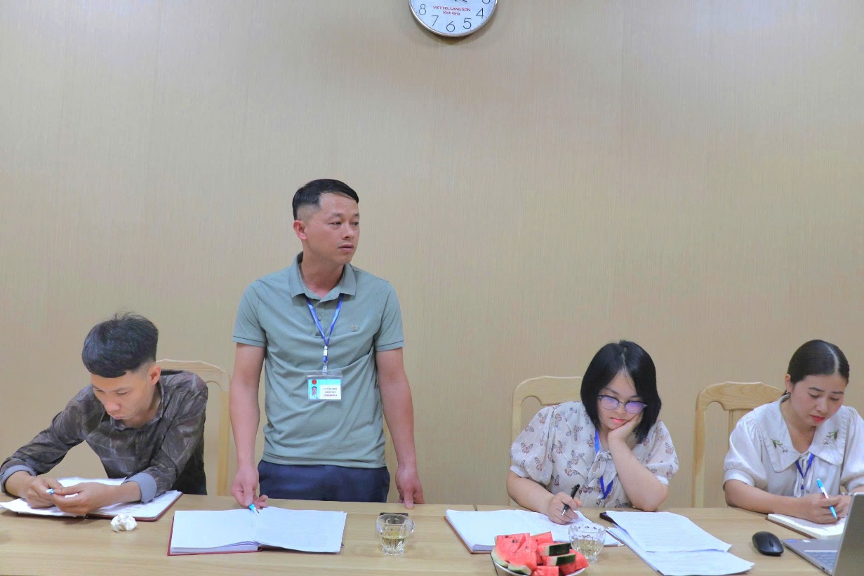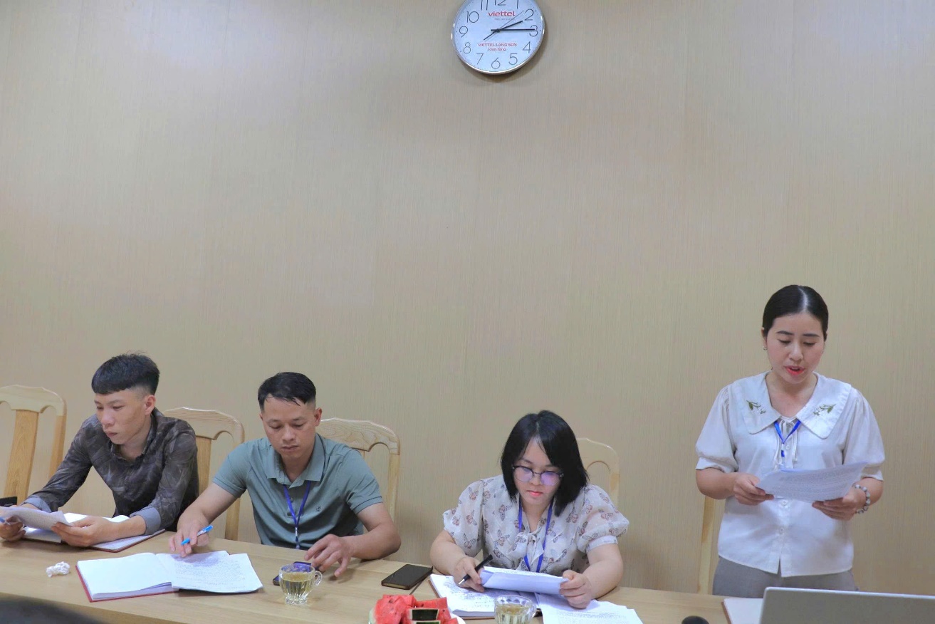 Các thành viên trong đoàn kiểm tra của xã và công chức Trung tâm phục vụ hành chính công xã phát biểu