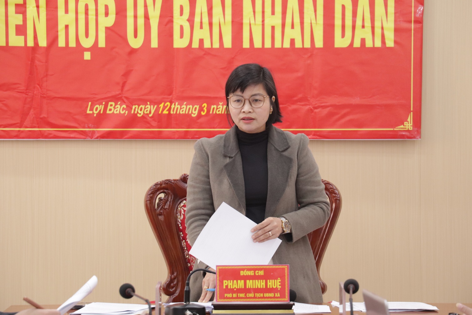Ngày 12/3/2026, UBND xã Lợi Bác tổ chức phiên họp quý I năm 2026 nhằm đánh giá tình hình thực hiện nhiệm vụ phát triển kinh tế - xã hội, quốc phòng - an ninh trong 3 tháng đầu năm và triển khai nhiệm vụ trọng tâm trong thời gian tới. Đồng chí Phạm Minh Huệ, Phó Bí thư Đảng ủy, Chủ tịch UBND xã chủ trì phiên họp.