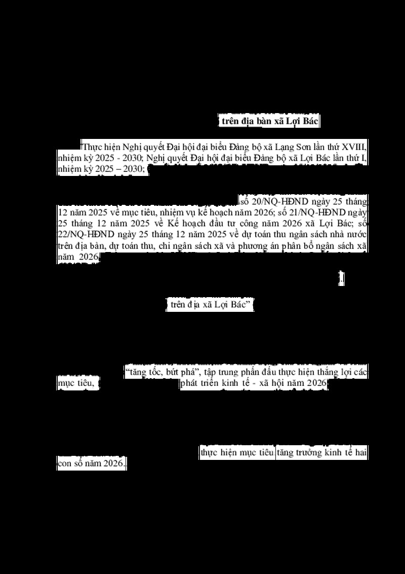 | Tiêu đề văn bản | KẾ HOẠCH Phát động phong trào thi đua phấn đấu đạt tốc độ tăng trưởng kinh tế hai con số năm 2026 trên địa bàn xã Lợi Bác | ||