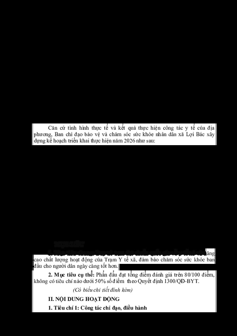 KẾ HOẠCH Triển khai thực hiện Bộ tiêu chí Quốc gia về y tế xã năm 2026 theo Quyết định số 1300/QĐ-BYT