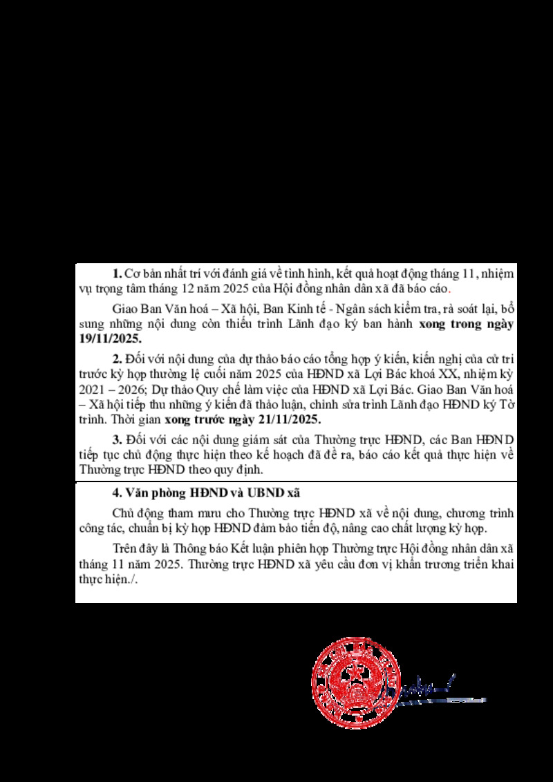 | Tiêu đề văn bản | THÔNG BÁO Kết luận phiên họp Thường trực Hội đồng nhân dân xã tháng 11 năm 2025 | ||