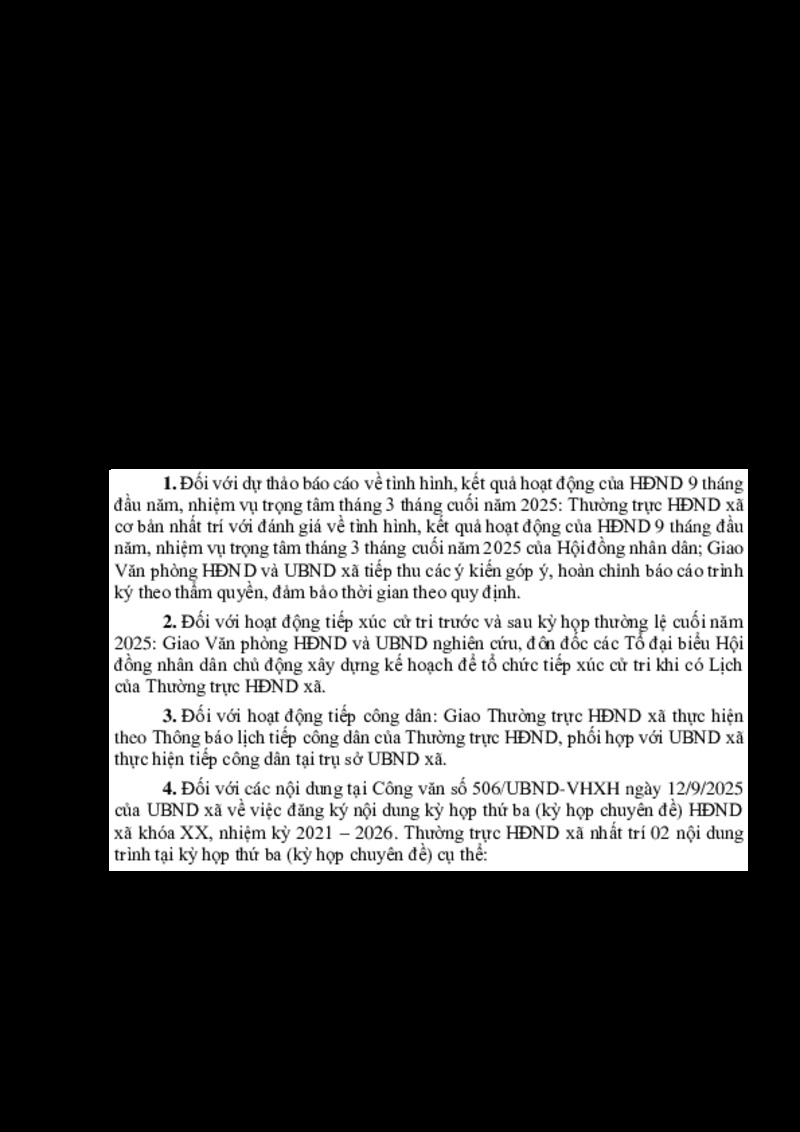 | Tiêu đề văn bản | THÔNG BÁO Kết luận phiên họp Thường trực Hội đồng nhân dân xã tháng 9 năm 2025 | ||