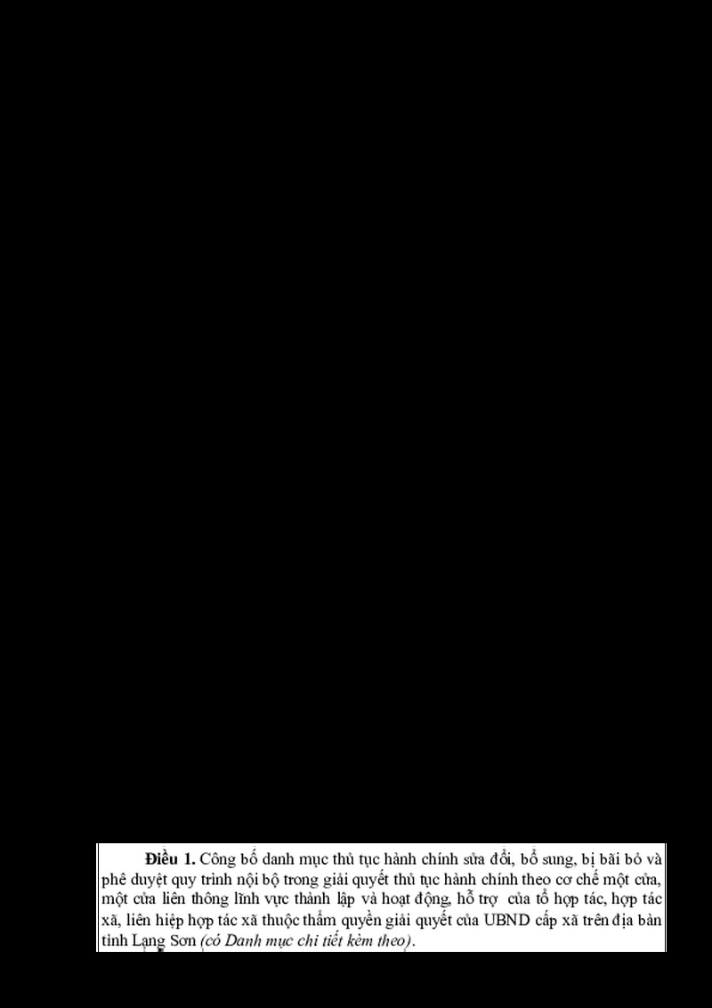 | Tiêu đề văn bản | QUYẾT ĐỊNH Công bố danh mục TTHC sửa đổi, bổ sung, bị bãi bỏ và phê duyệt quy trình nội bộ trong giải quyết TTHC theo cơ chế một cửa, một cửa liên thông lĩnh vực thành lập và hoạt động, hỗ trợ của tổ hợp tác, hợp tác xã, liên hiệp hợp tác xã | ||