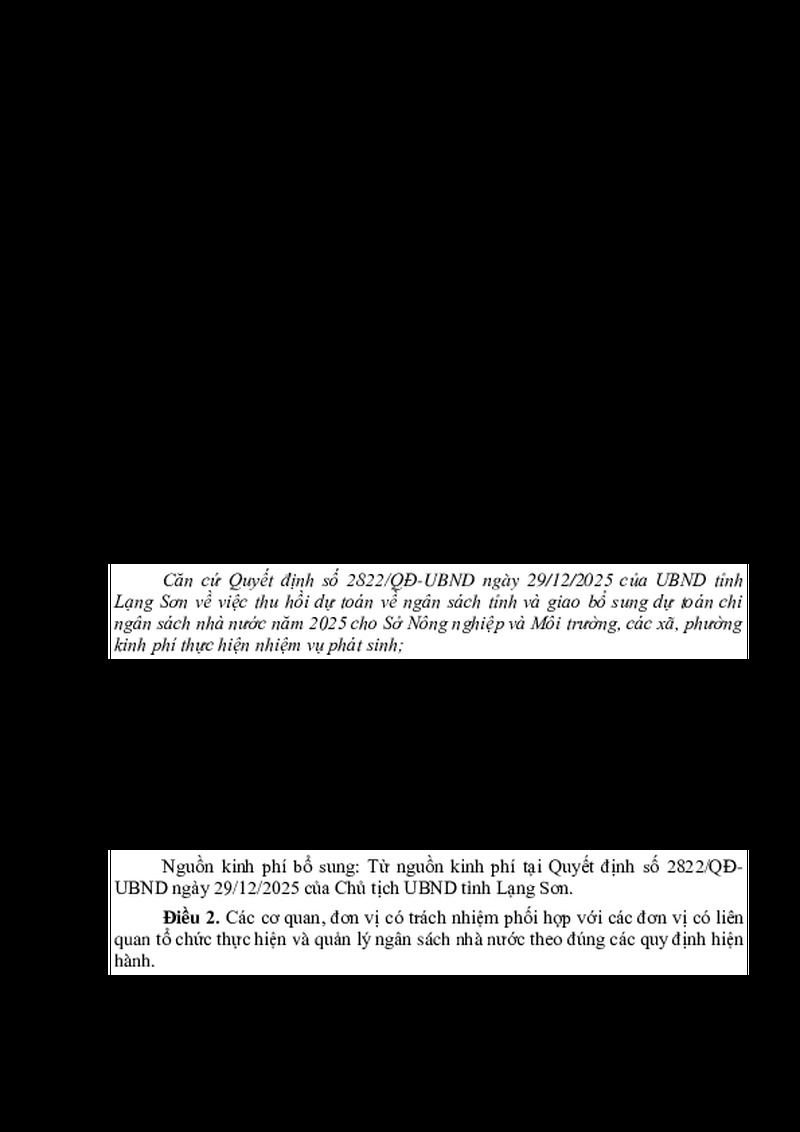 | Tiêu đề văn bản | QUYẾT ĐỊNH Về việc giao bổ sung dự toán chi ngân sách nhà nước năm 2025 cho các cơ quan, đơn vị thực hiện các nhiệm vụ phát sinh | ||