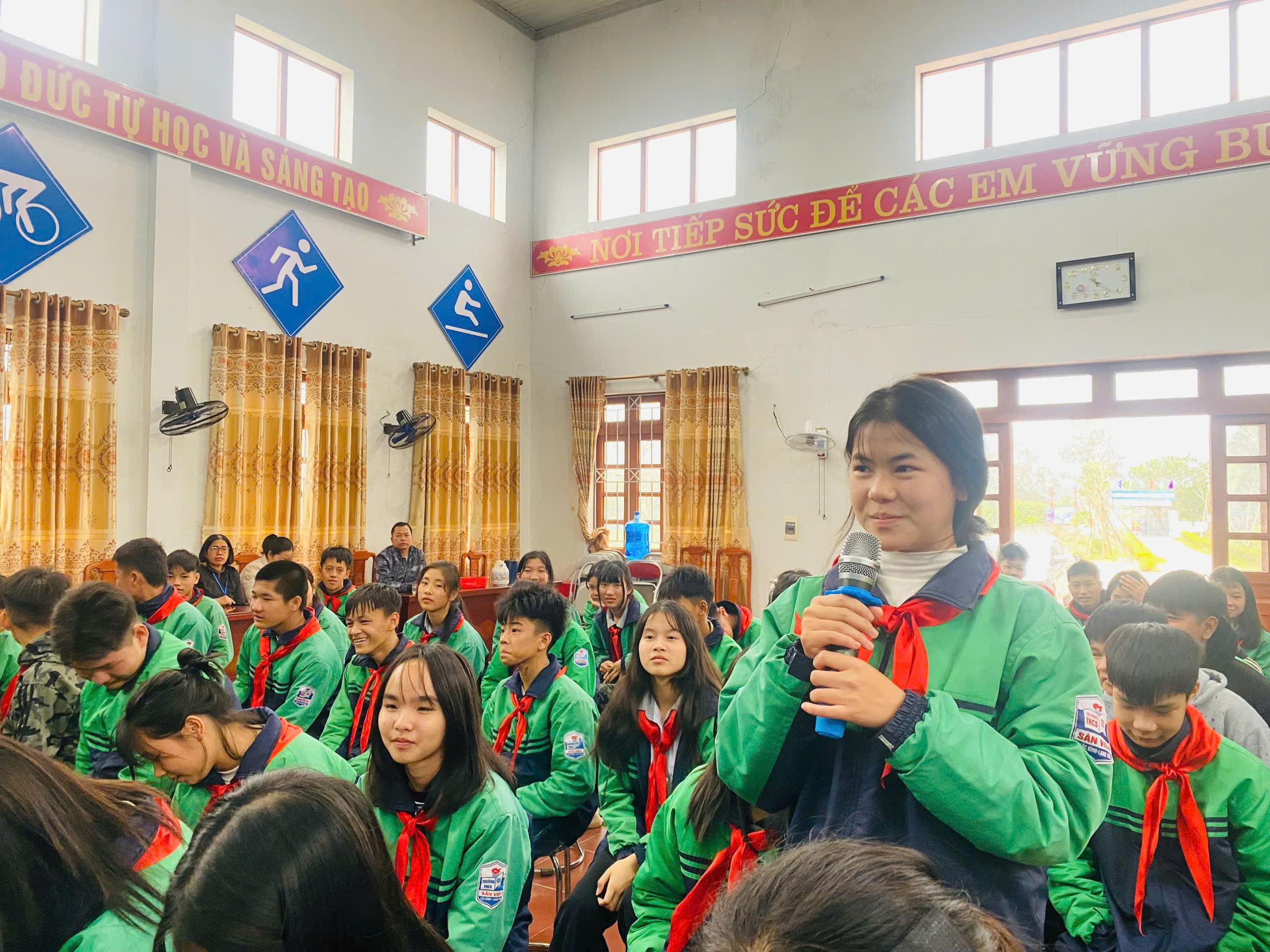 Học sinh Trường THCS Sàn Viên nghe buổi tuyên truyền