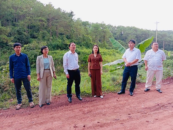 Đồng chí Nguyễn Đặng Ân, Tỉnh ủy viên, Giám đốc Sở Văn hóa, Thể thao và Du lịch tỉnh và lãnh đạo xã khảo sát địa điểm quy hoạch Trung tâm hành chính xã