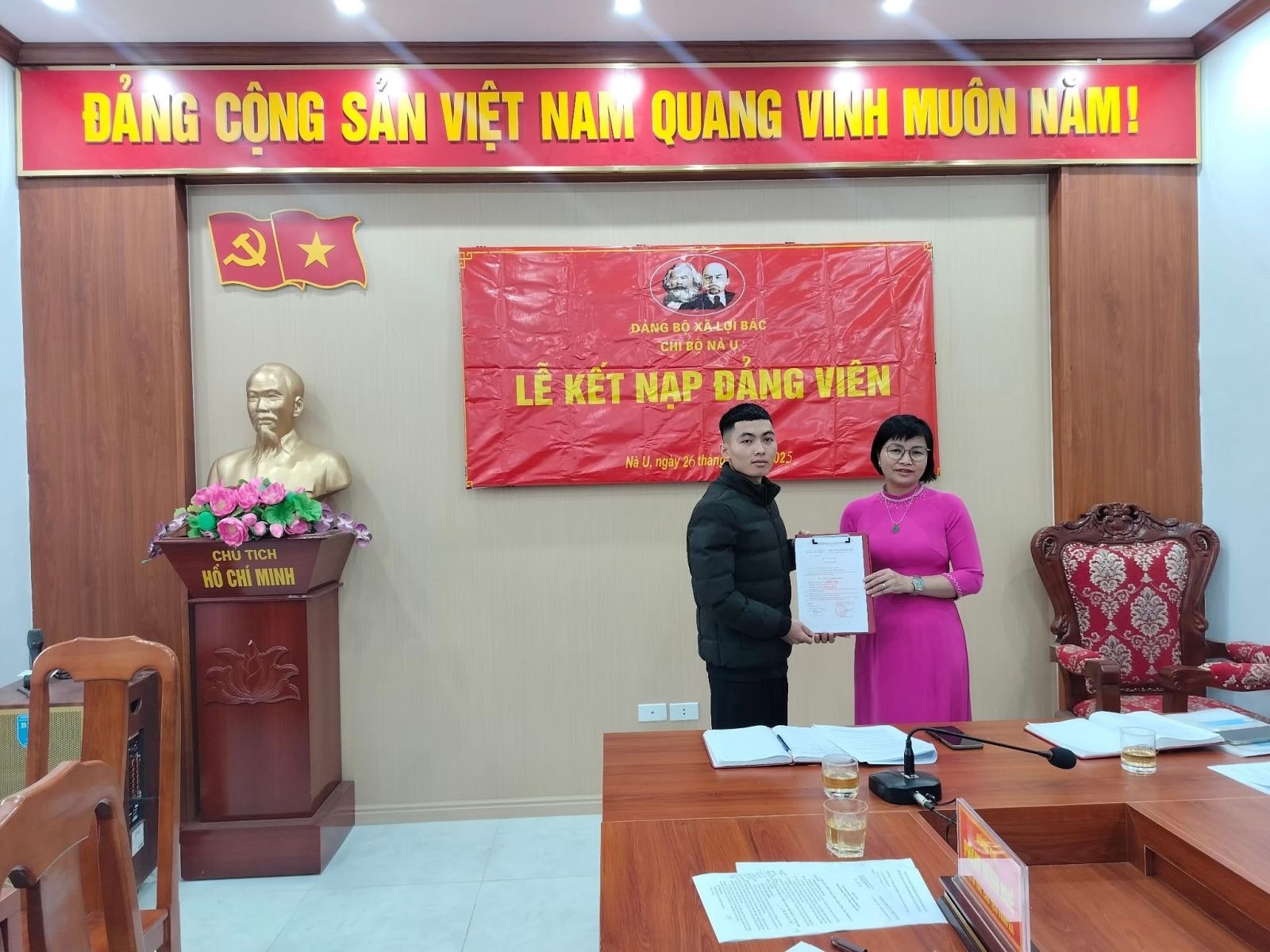 Chiều ngày 26/11/2025, Chi bộ thôn Nà U, xã Lợi Bác đã tổ chức buổi sinh hoạt gắn với Lễ kết nạp đảng viên mới cho quần chúng Ma Xuân Thịnh. Buổi sinh hoạt có sự tham dự đầy đủ của 12/12 đảng viên trong chi bộ. Đồng chí Phạm Minh Huệ, Phó Bí thư Đảng ủy, Chủ tịch UBND xã dự, chỉ đạo.