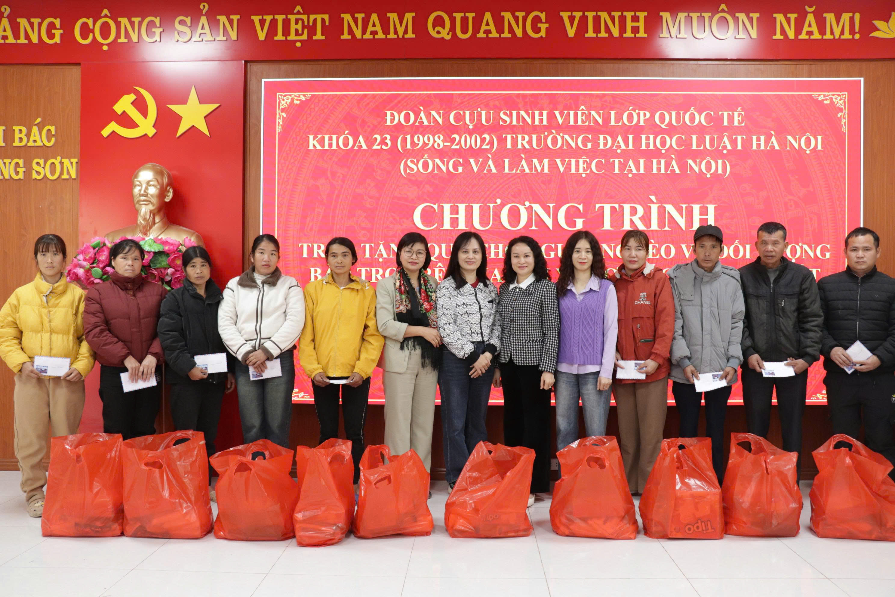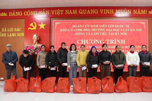 ĐOÀN CỰU SINH VIÊN LỚP QUỐC TẾ KHÓA 23 (1998 – 2002) TRƯỜNG ĐẠI HỌC LUẬT HÀ NỘI TẶNG QUÀ TẾT TẠI XÃ LỢI BÁC