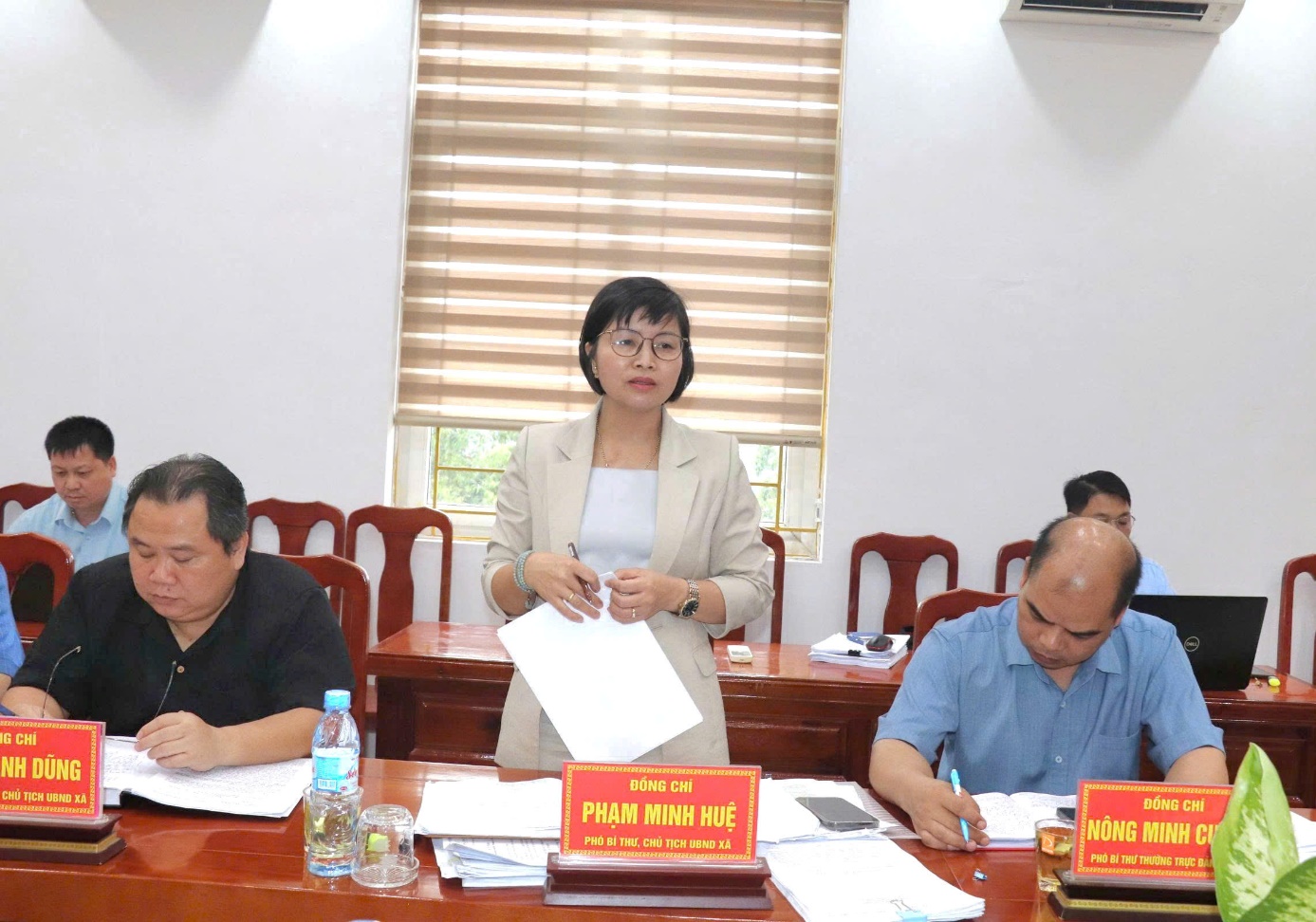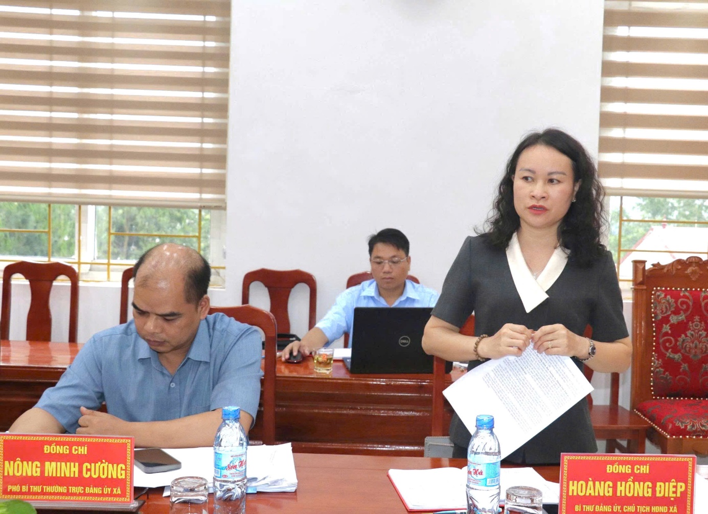 Thành viên trong đoàn kiểm tra của Ban Thường vụ Tỉnh ủy Lạng Sơn và đại diện lãnh đạo xã phát biểu