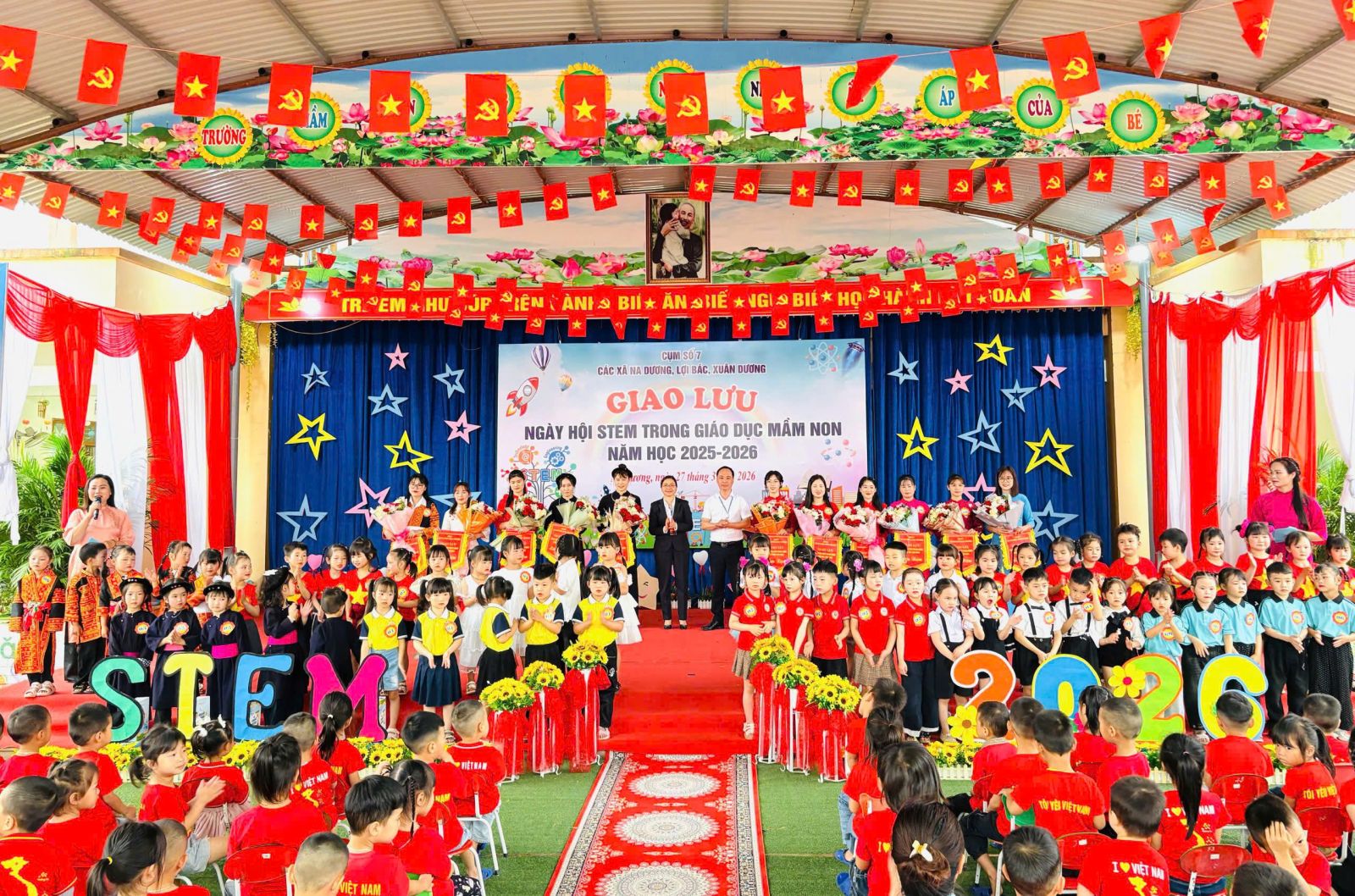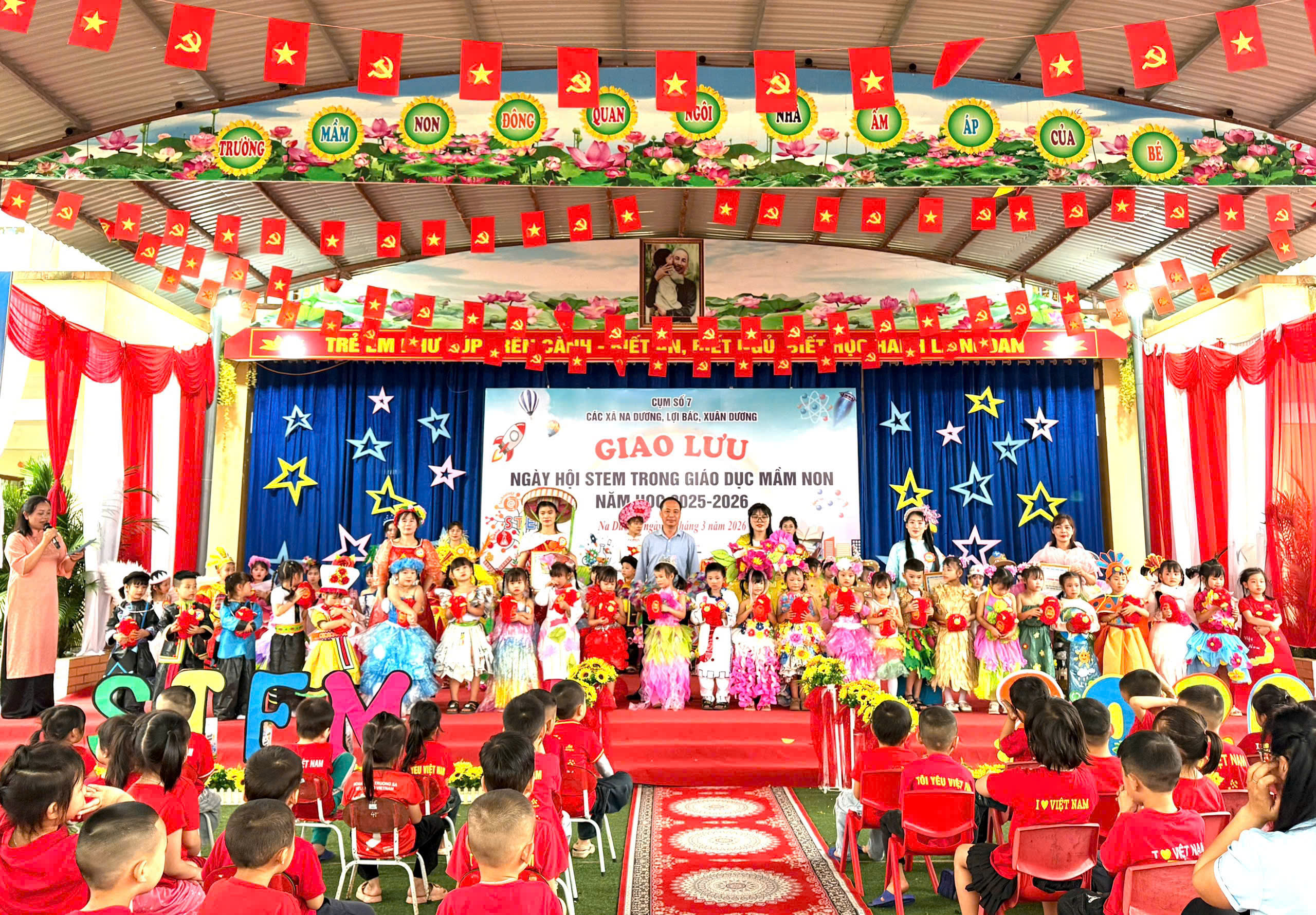 Ngày 27/3/2026, tại Trường Mầm non Đông Quan, Phòng Văn hóa – Xã hội xã Na Dương phối hợp với các đơn vị trong Cụm 7 gồm các xã Na Dương, Lợi Bác, Xuân Dương tổ chức chương trình Giao lưu Ngày hội STEM trong giáo dục mầm non năm học 2025 – 2026