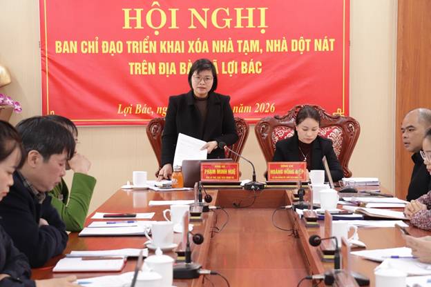 Sáng 10/01/2026, Đảng ủy xã Lợi Bác tổ chức hội nghị Ban Chỉ đạo triển khai xóa nhà tạm, nhà dột nát trên địa bàn xã Lợi Bác (Ban Chỉ đạo). Đồng chí Hoàng Hồng Điệp, Bí thư Đảng ủy, Chủ tịch HĐND xã, Trưởng Ban Chỉ đạo; đồng chí Phạm Minh Huệ, Phó Bí thư Đảng ủy, Chủ tịch UBND xã, Phó Trưởng Ban Thường trực Ban Chỉ đạo chủ trì hội nghị. Tham dự hội nghị có đồng chí Nông Minh Cường, Phó Bí thư Thường trực Đảng ủy xã, Phó Trưởng Ban Chỉ đạo; các thành viên Ban Chỉ đạo triển khai xóa nhà tạm, nhà dột nát.
