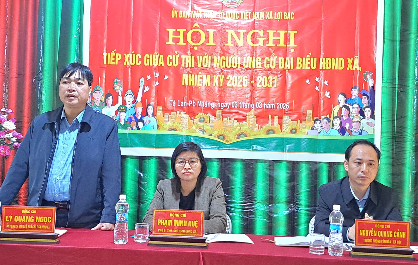 HỘI NGHỊ TIẾP XÚC CỬ TRI VỚI NGƯỜI ỨNG CỬ ĐẠI BIỂU HĐND XÃ LỢI BÁC, NHIỆM KỲ 2026-2031, THUỘC ĐƠN VỊ BẦU CỬ SỐ 3 TẠI CÁC THÔN TÀ LẠN - PÒ NHÀNG, NÀ LÀNG