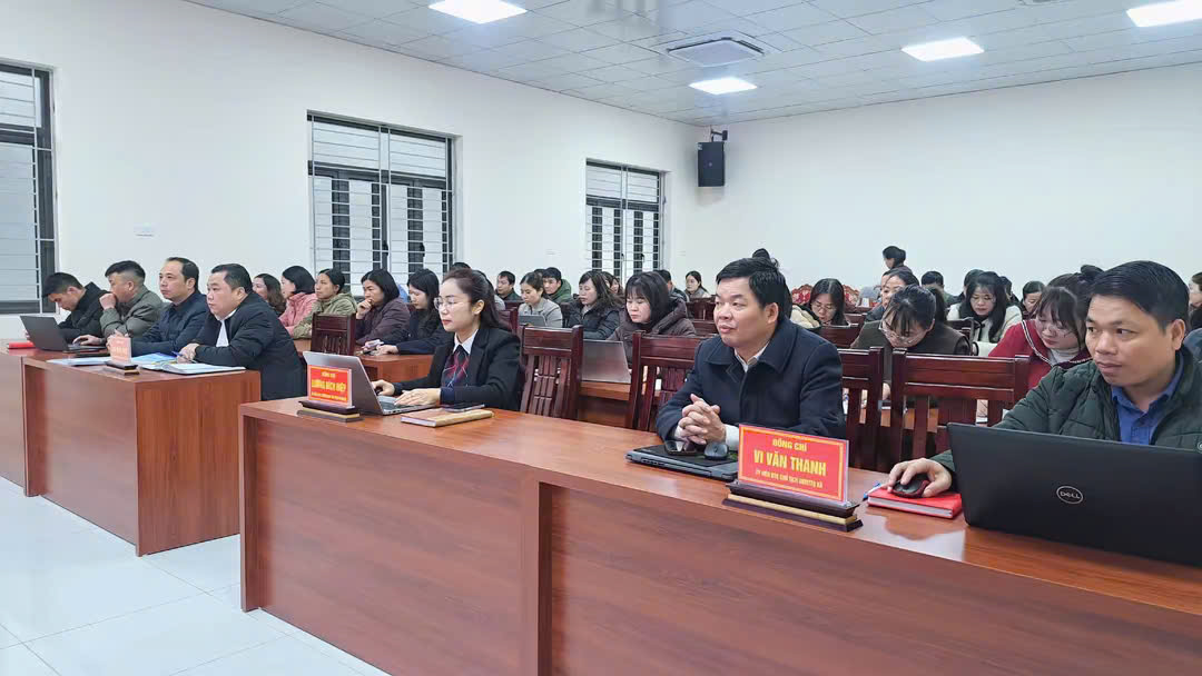 Toàn cảnh, các đại biểu dự điểm cầu xã Lợi Bác