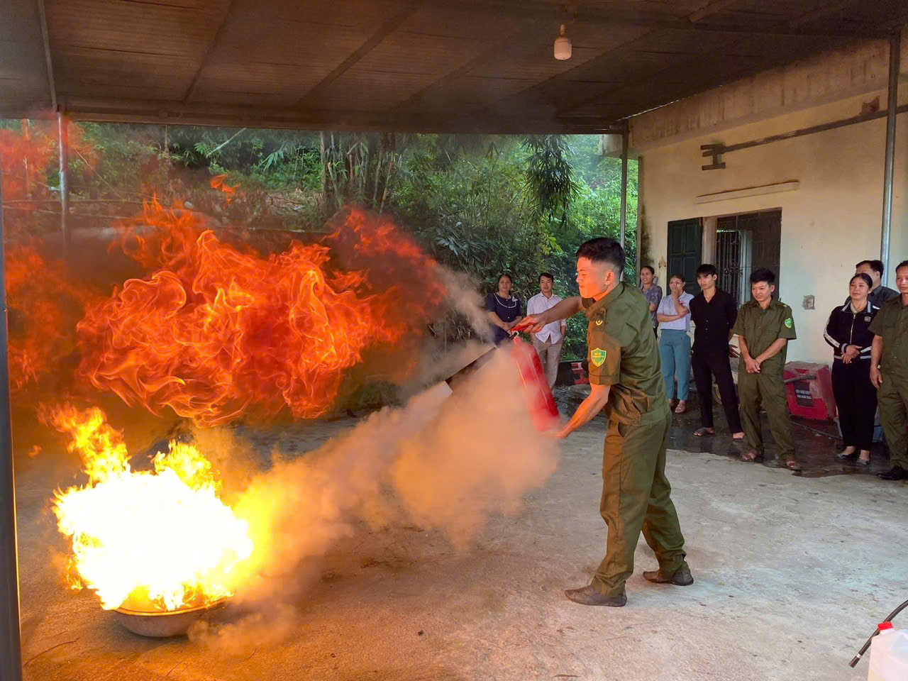 Công an xã Lợi Bác hướng dẫn cách sử dùng bình chữa cháy