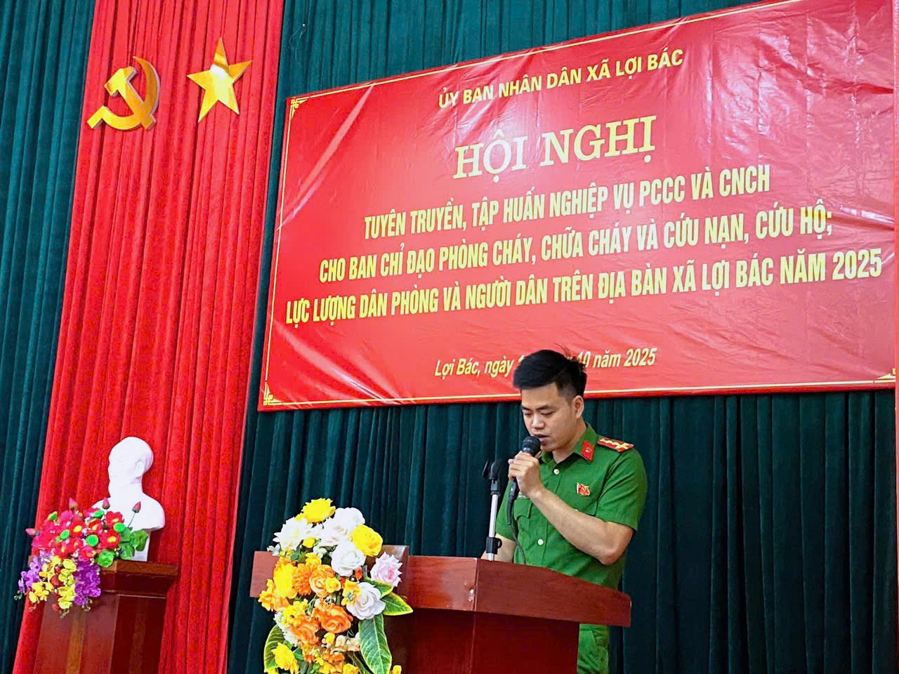 Ngày 14/10/2025, Công an xã Lợi Bác đã tham mưu cho UBND xã tổ chức thành công Hội nghị tuyên truyền, tập huấn nghiệp vụ về phòng cháy chữa cháy và cứu nạn cứu hộ cho Ban chỉ đạo PCCC và CNCH; Lực lượng dân phòng, và người dân trên địa bàn xã Lợi Bác. Qua đó giúp các lực lượng PCCC ở cơ sở nắm được cách Phòng cháy, nổ và kỹ xử lý tình huống cũng như thoát nạn, nắm được các bước sử dụng bình chữa cháy để áp dụng vào thực tế.