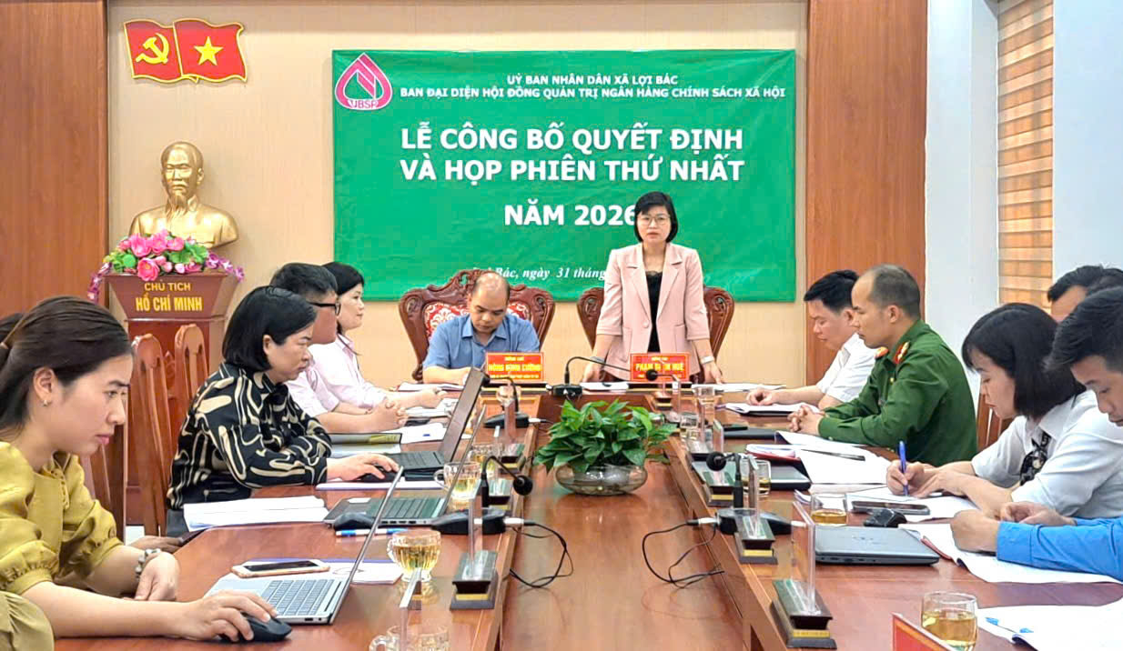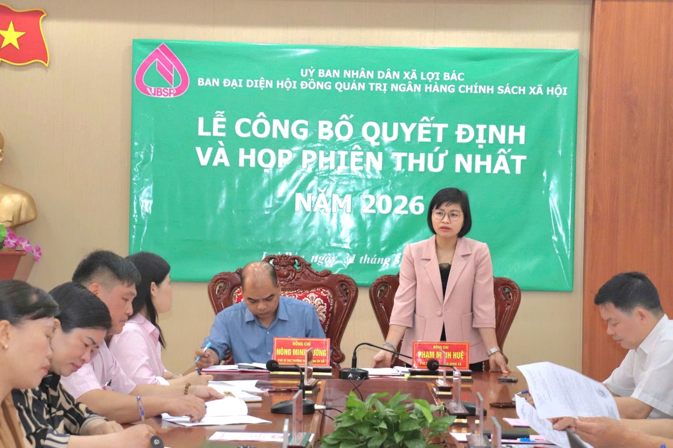 Ngày 31/3/2026, Ban đại diện HĐQT NHCSXH xã Lợi Bác tổ chức phiên họp thứ nhất. Dự có đồng chí Nông Minh Cường, Phó Bí thư Thường trực Đảng ủy xã; đồng chí Phạm Minh Huệ, Phó Bí thư Đảng ủy, Chủ tịch UBND xã, Trưởng Ban đại diện Hội đồng quản trị ngân hàng chính sách xã hội xã Lợi Bác; đại diện lãnh đạo UBMTTQ Việt Nam xã, Phòng Kinh tế xã, Phòng Văn hóa - Xã hội xã, Văn phòng HĐND&UBND xã, Trung tâm Hành chính công xã, Trung tâm Dịch vụ công ích xã, Công an xã, đại diện lãnh đạo các tổ chức chính trị - xã hội xã, Phòng giao dịch NHCSXH Lộc Bình, Tổ trưởng nghiệp vụ, cán bộ tín dụng theo dõi địa bàn xã Lợi Bác.