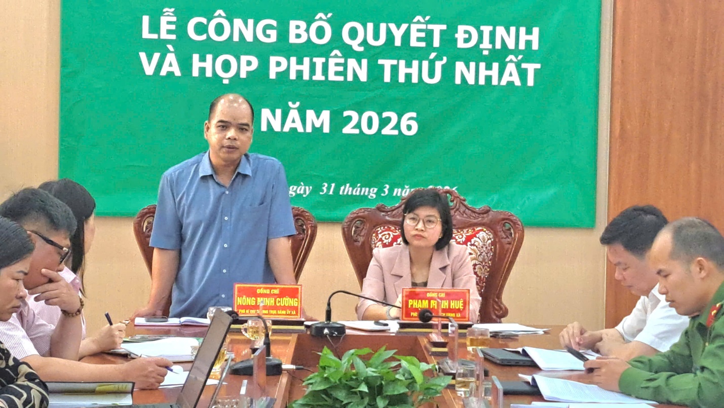 Phát biểu tại phiên họp đồng chí Nông Minh Cường, Phó Bí thư Thường trực Đảng ủy xã đề nghị: UBMTTQ chỉ đạo các tổ chức chính trị xã hội đẩy mạnh công tác tuyên truyền cho các đoàn viên, hội viên và bà con nhân dân về các chương trình cho vay của Ngân hàng chính sách xã hội, thực hiện công tác bình xét cho vay đảm bảo đúng quy định về hồ sơ đúng mục đích, đối tượng vay vốn, kiểm tra, giám sát việc sử dụng nguồn vốn vay đúng mục đích hiệu quả.