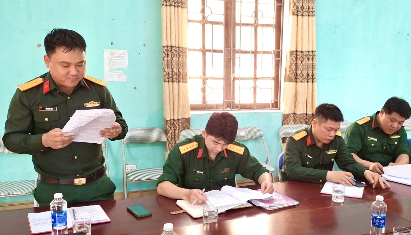 Lãnh đạo Ban CHQS xã báo cáo kết quả thực hiện Kết quả thực hiện nhiệm vụ công tác quốc phòng quân sự địa phương quý I năm 2026