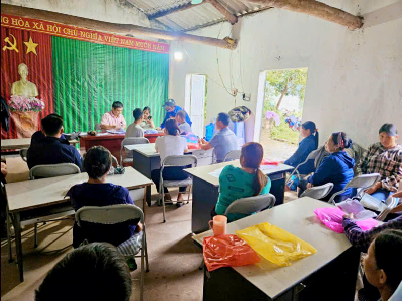 Cán bộ Ngân hàng đối chiếu phân loại nợ tại thôn Khòn Cháo – Co Cai
