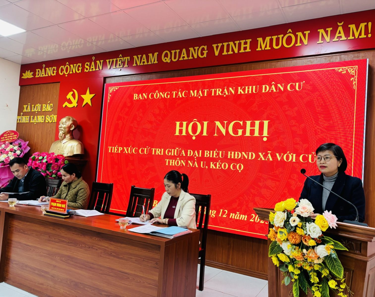 Tham dự hội nghị có đồng chí Phạm Minh Huệ - Phó bí thư Đảng Ủy, Tổ trưởng Tổ đại biểu HĐND số 03. Cùng dự có 04/04 đại biểu Tổ đại biểu số 3 HĐND xã, các đồng bí thư chi bộ, Trưởng thôn, Trưởng ban công tác Mặt trận và đại diện cử tri hai thôn Nà U và Kéo Cọ trên địa bàn xã Lợi Bác.