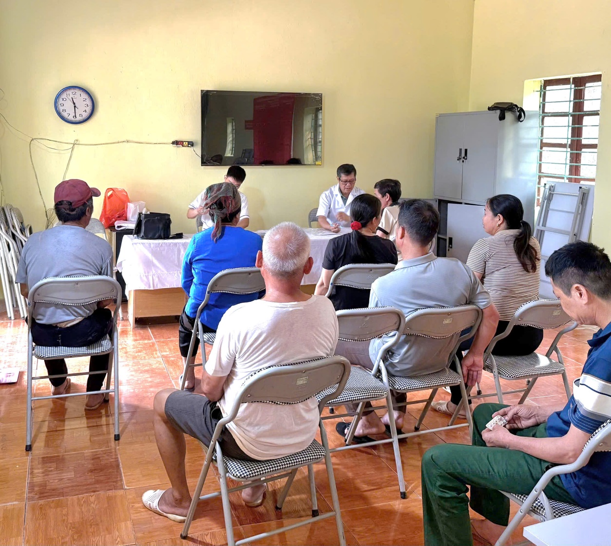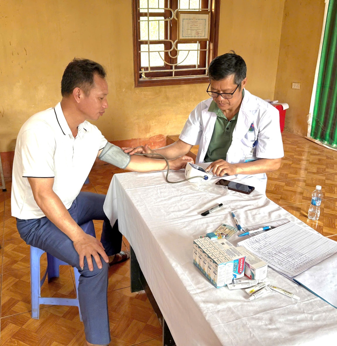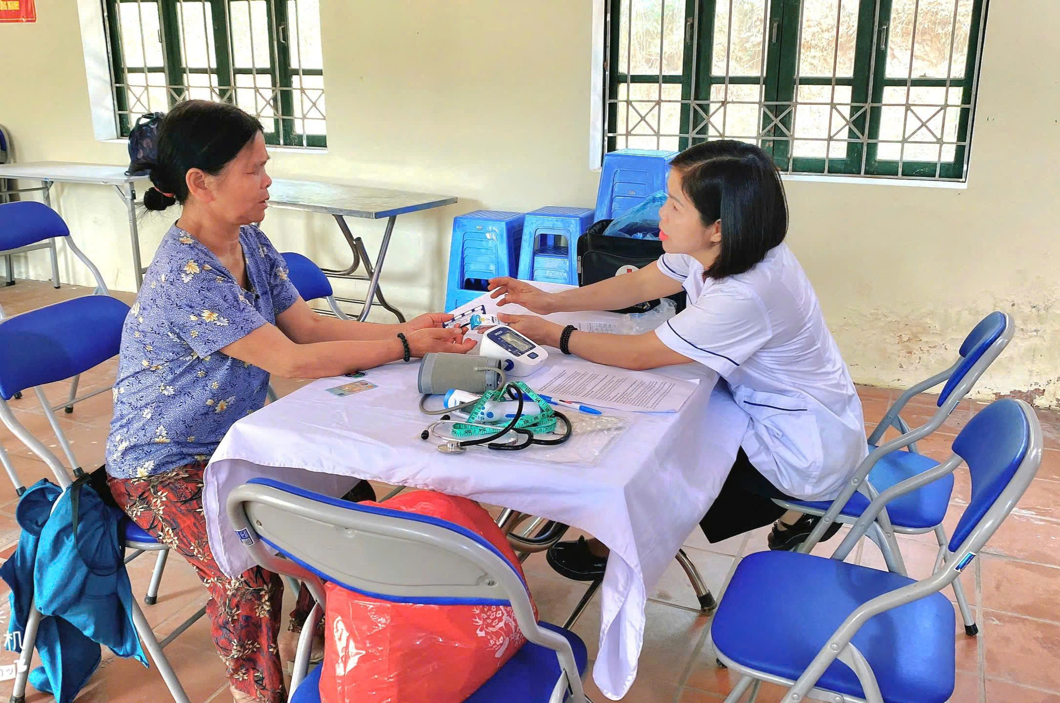 Các cán bộ Trạm y tế khám sức khỏe cho Nhân dân