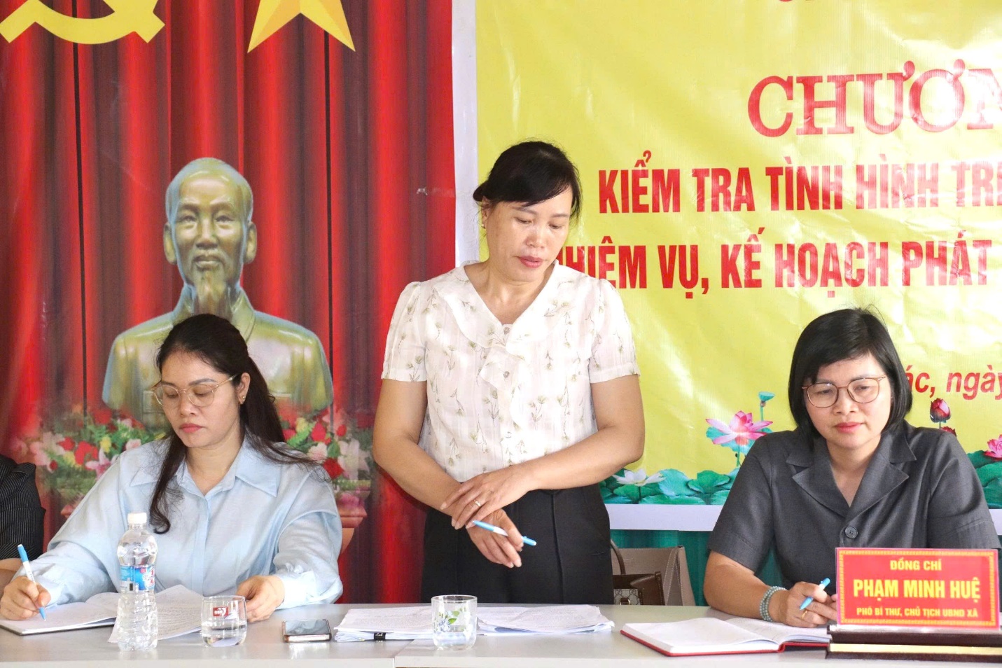 Đồng chí Phạm Minh Huệ, Phó Bí thư Đảng ủy, Chủ tịch UBND xã phát biểu tại buổi làm việc