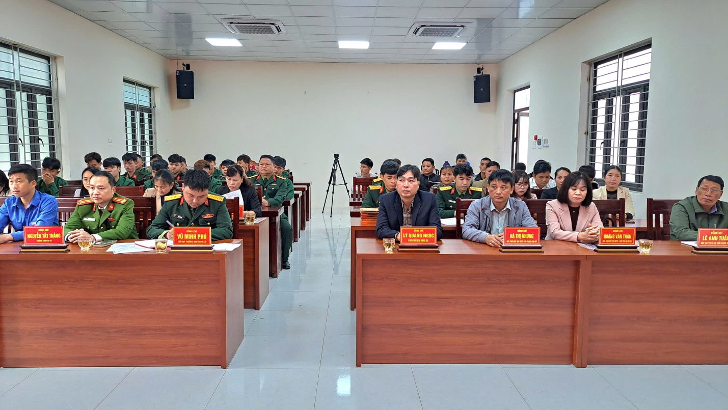 Tại buổi gặp mặt, đồng chí Lý Quang Ngọc, Phó Chủ tịch UBND xã đã phát biểu chúc mừng, ghi nhận biểu dương toàn thể thanh niên nhập ngũ năm 2026 đã nghiêm chỉnh chấp hành Luật Nghĩa vụ quân sự và Luật Công an nhân dân của các công dân. Đồng chí đề nghị các cấp ủy đảng, chính quyền, Mặt trận Tổ quốc, các Hội, Đoàn thể và toàn dân trong xã thực hiện tốt chính sách hậu phương quân đội, Công an. Đồng thời mong muốn các tân binh trước khi lên đường nhập ngũ giữ gìn sức khỏe, không vi phạm an toàn giao thông và các tệ nạn xã hội khác, để ngày 4/3/2026 tức ngày 16 tháng giêng năm Bính Ngọ năm 2026 diễn ra lễ giao nhân quân đảm bảo chỉ tiêu cấp trên giao.