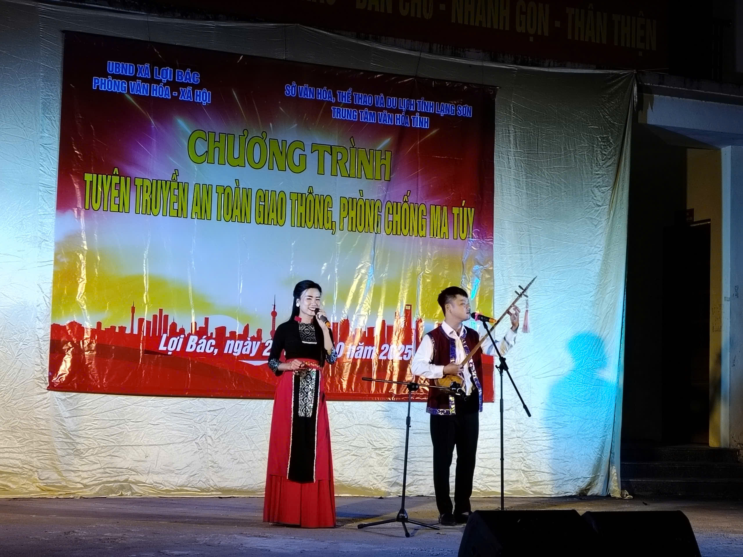 Tối ngày 21/10/2025, tại trụ sở UBND xã Lợi Bác, Phòng Văn hóa xã Lợi Bác phối hợp với Trung tâm Văn hóa tỉnh Lạng Sơn tổ chức chương trình văn nghệ tuyên truyền an toàn giao thông và phòng, chống ma túy. Chương trình nhằm nâng cao nhận thức, ý thức chấp hành pháp luật về an toàn giao thông và phòng, chống tệ nạn ma túy trong các tầng lớp nhân dân, đặc biệt là thanh thiếu niên trên địa bàn xã.