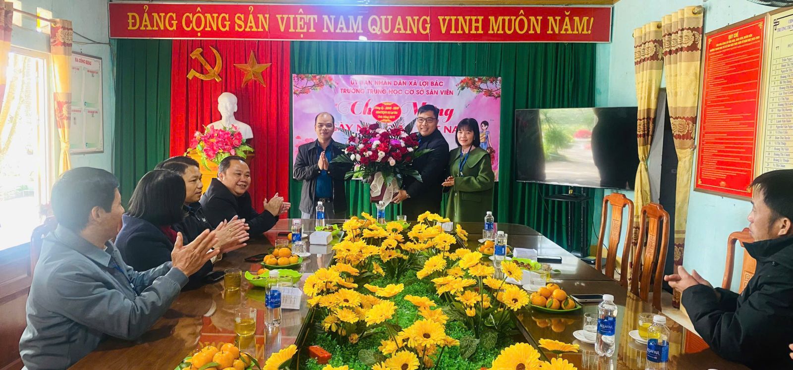 Đoàn thăm và tặng hoa chúc mừng Trường THCS Sàn Viên