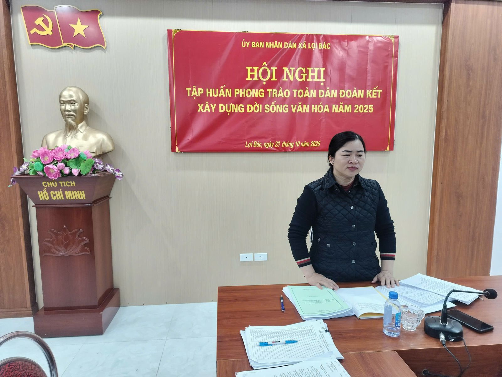 XÃ LỢI BÁC TỔ CHỨC HỘI NGHỊ TẬP HUẤN PHONG TRÀO “TOÀN DÂN ĐOÀN KẾT XÂY DỰNG ĐỜI SỐNG VĂN HÓA” NĂM 2025