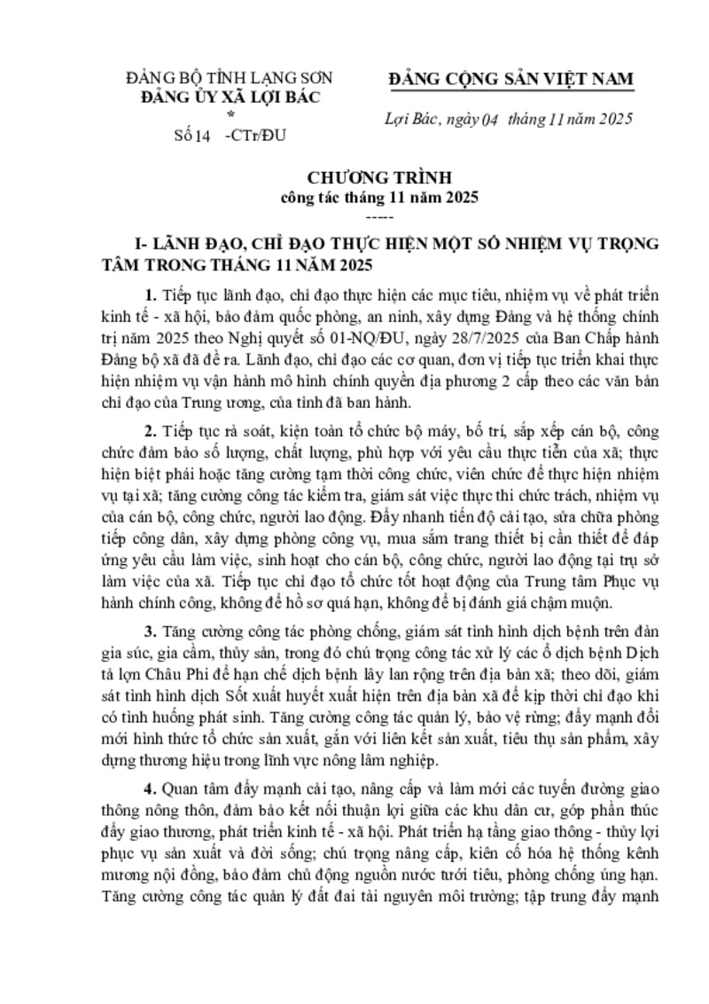 | Tiêu đề văn bản | CHƯƠNG TRÌNH công tác tháng 11 năm 2025 | ||