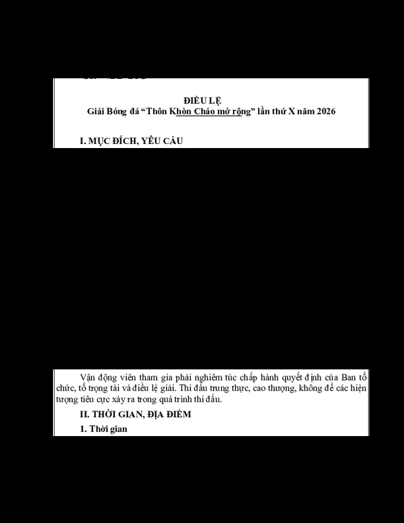 | Tiêu đề văn bản | ĐIỀU LỆ Giải Bóng đá “Thôn Khòn Cháo mở rộng” lần thứ X năm 2026 | ||