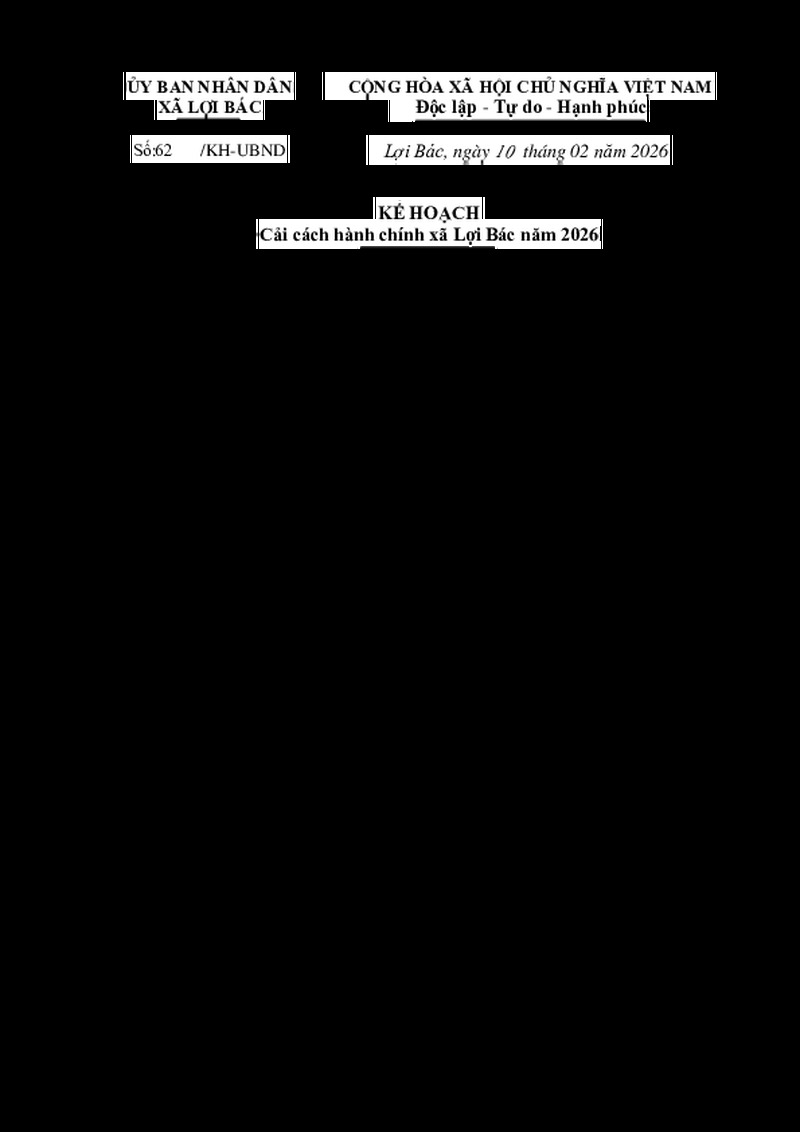 KẾ HOẠCH Cải cách hành chính xã Lợi Bác năm 2026