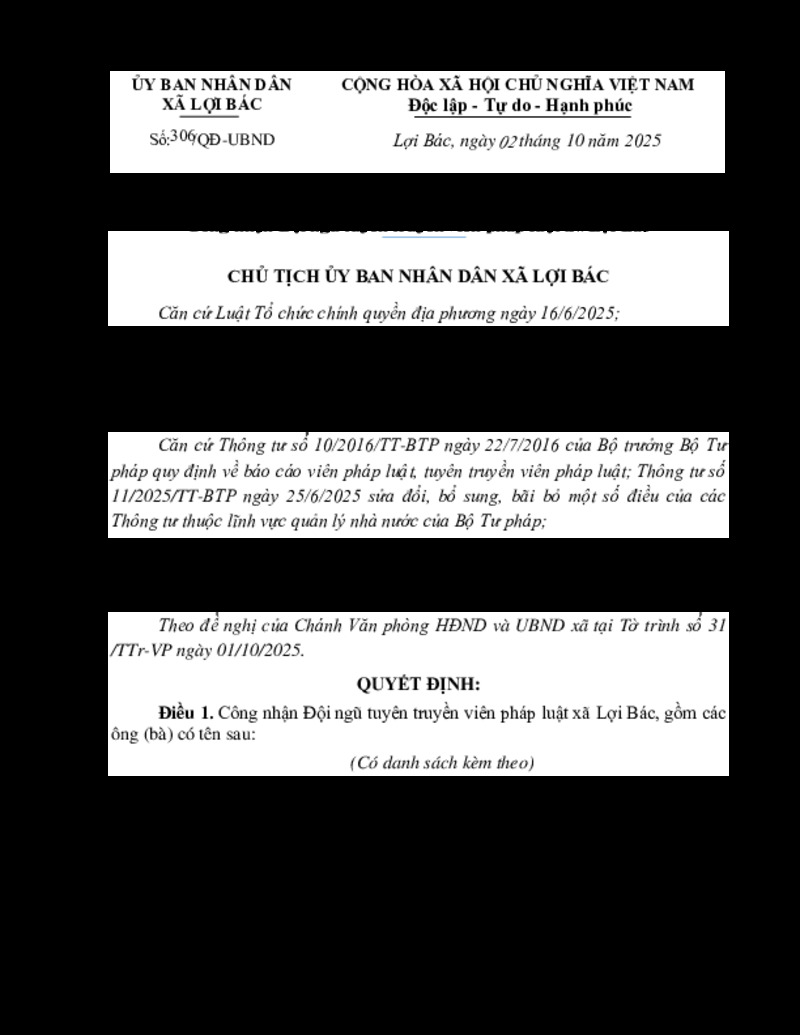 QUYẾT ĐỊNH Công nhận Đội ngũ tuyên truyền viên pháp luật xã Lợi Bác