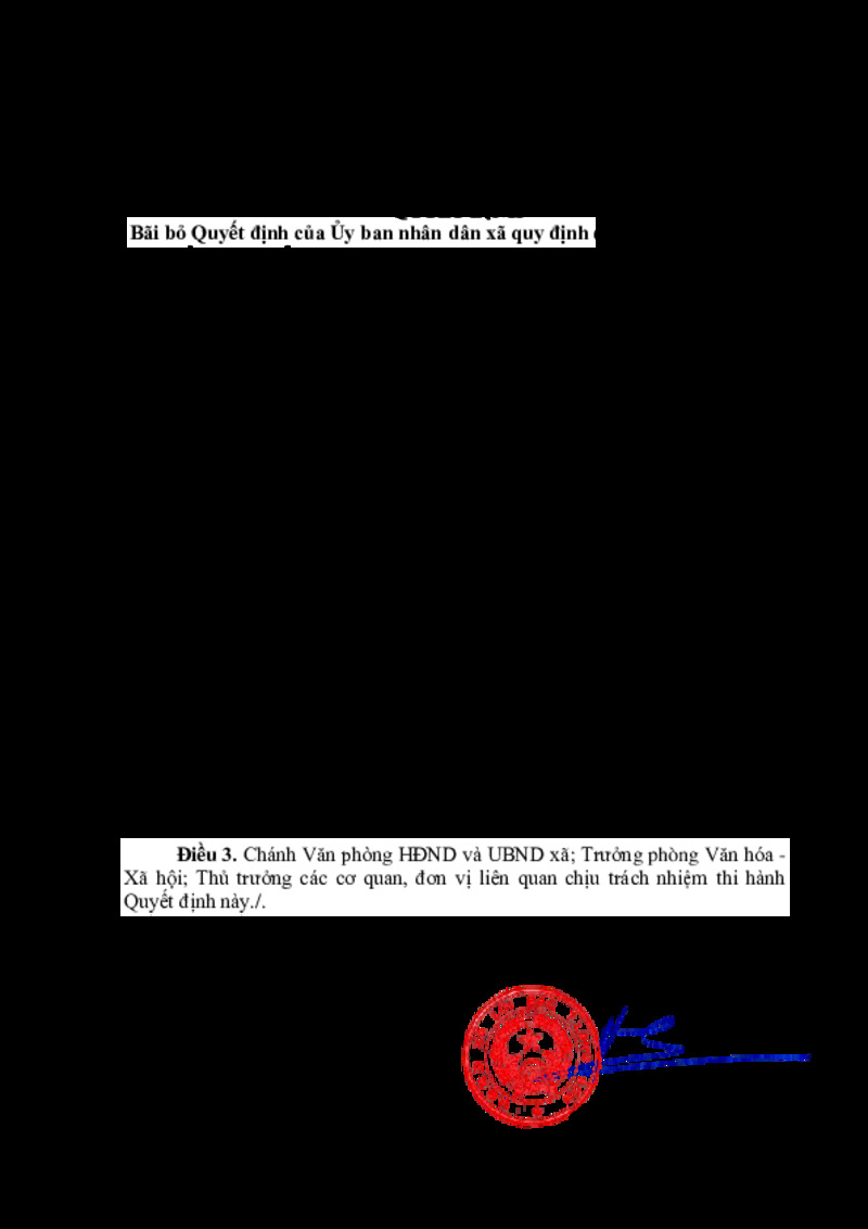 | Tiêu đề văn bản | QUYẾT ĐỊNH Bãi bỏ Quyết định của Ủy ban nhân dân xã quy định chức năng, nhiệm vụ, quyền hạn và tổ chức bộ máy của Phòng Văn hóa - Xã hội xã Lợi Bác | ||